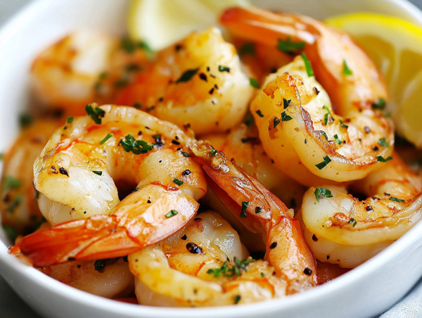 •Instructions: Sauté garlic in butter until fragrant, add shrimp, and cook until pink. Finish with parsley and a squeeze of lemon. Serve in a bowl with crusty bread for dipping.