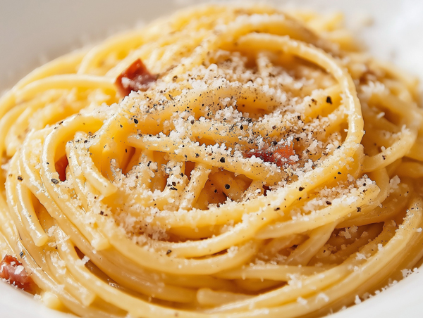 •Ingredients: Spaghetti, eggs, Parmesan cheese, pancetta or bacon, garlic, and black pepper.